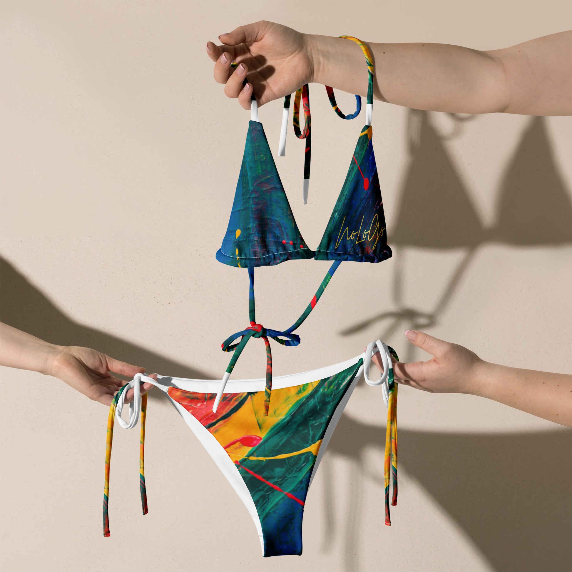 • To make your All-Over Print Recycled String Bikini last longer, thoroughly rinse it off after each use and get rid of any chlorine/salt residue.