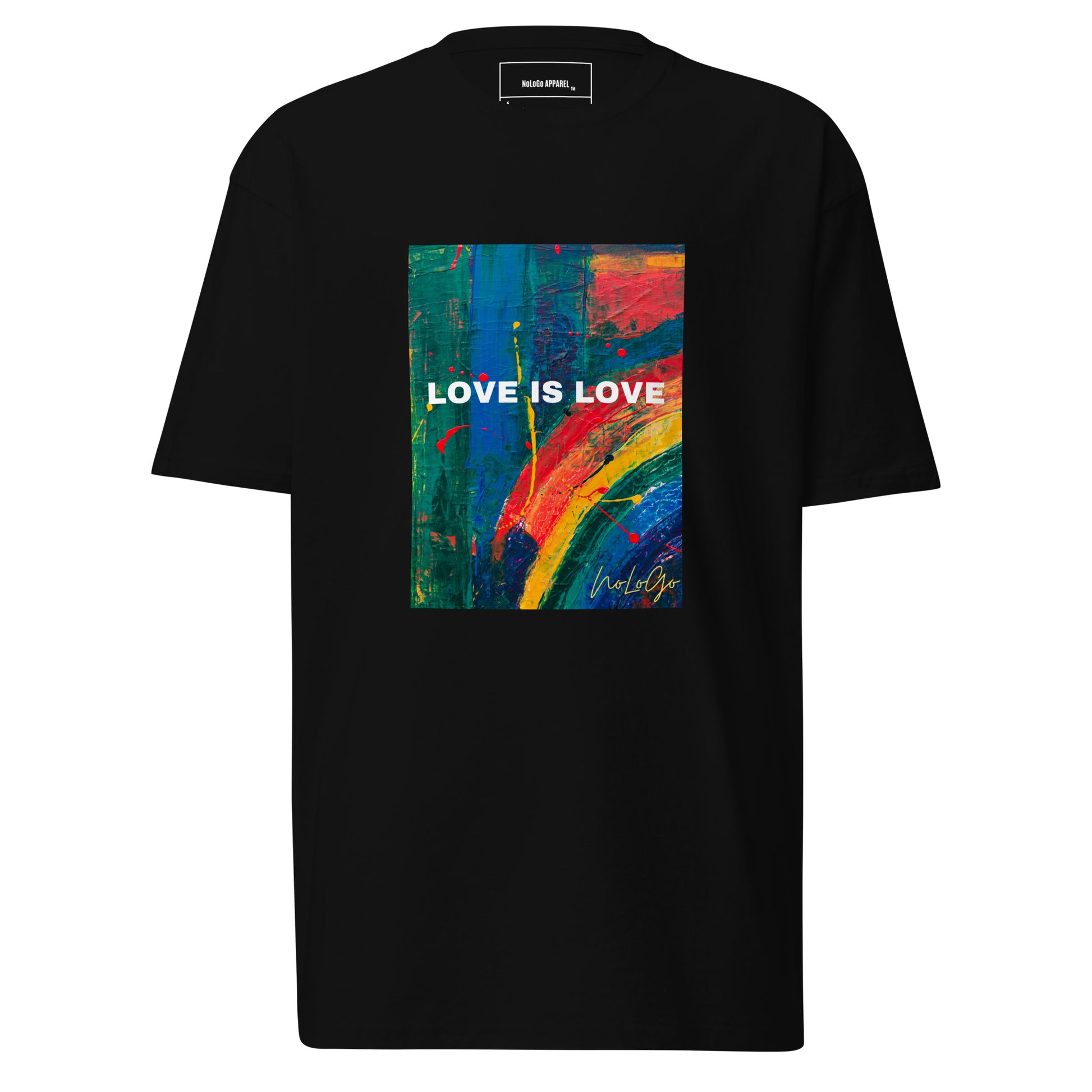 Love is Love Men’s premium heavyweight tee (black, white and yellow)