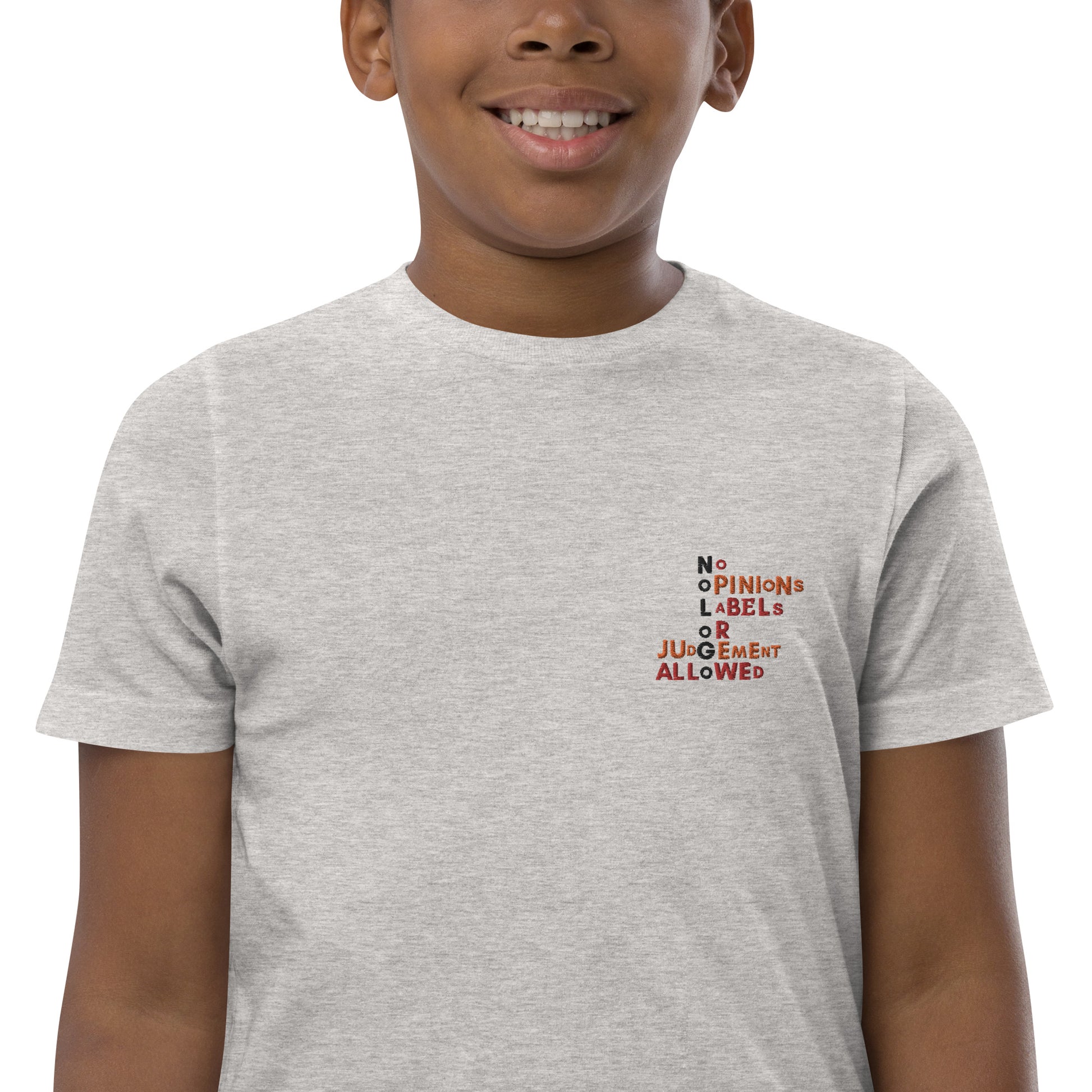 Made from 100% ring-spun combed cotton, this classic youth jersey t-shirt is soft and comfy—great for an everyday outfit. Try it out!
