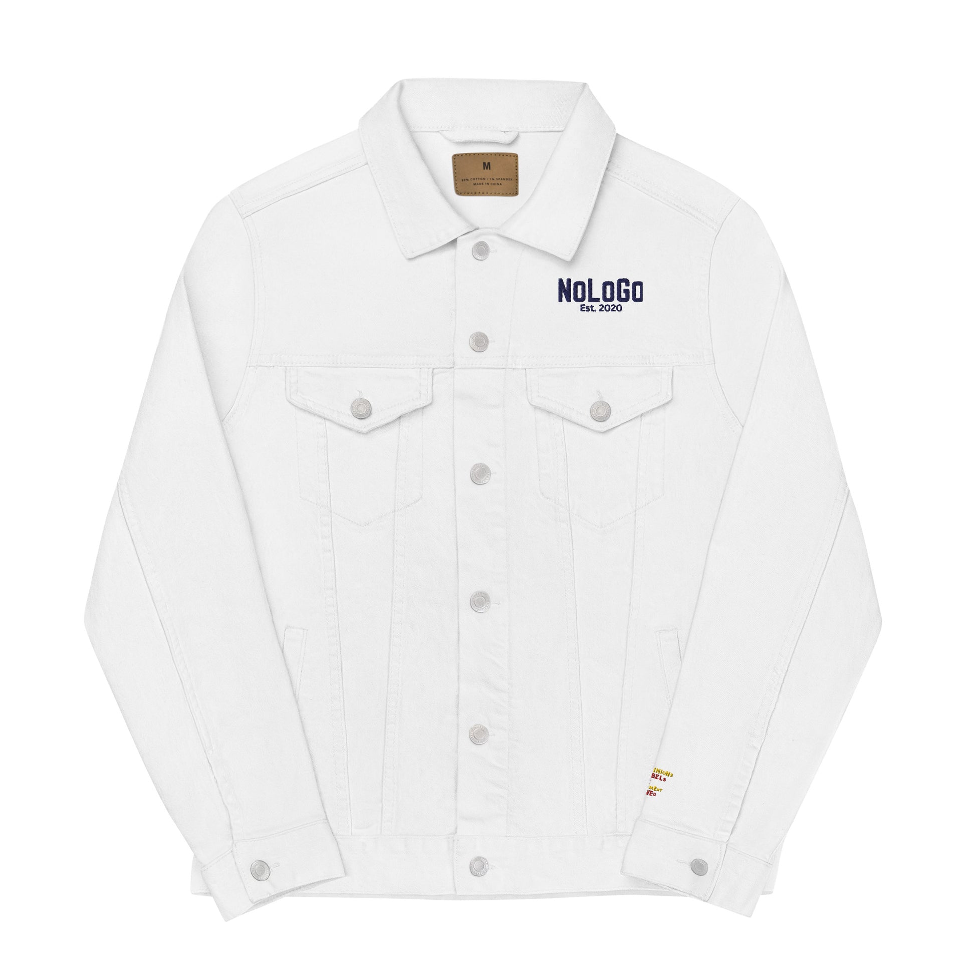 NoLoGo Est 2020 Unisex white denim jacket