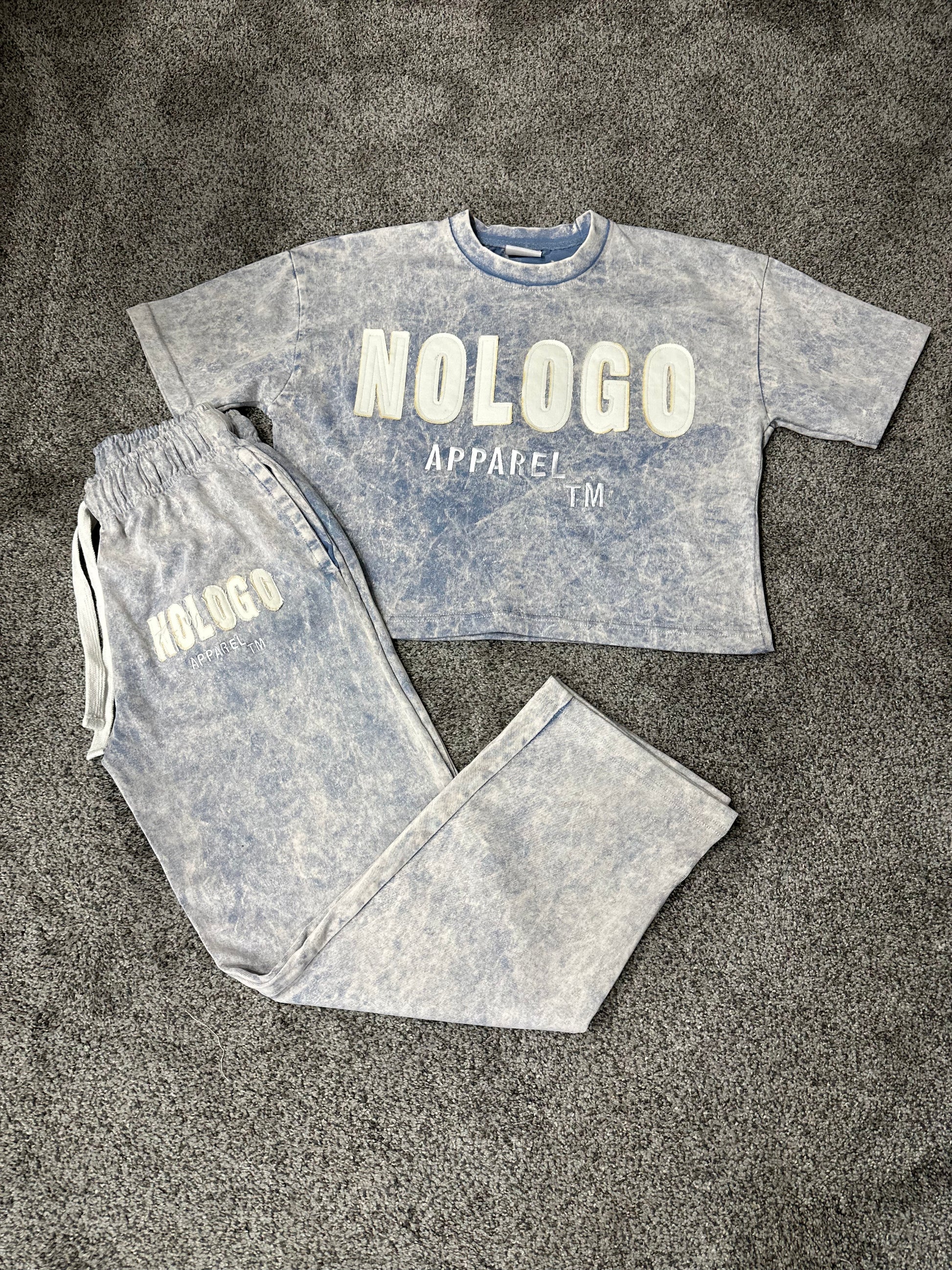 Introducing the NoLoGo loungewear set, featuring an edgy acid wash design and a large, distressed logo across the chest. Enjoy comfort and style with this must-have set.